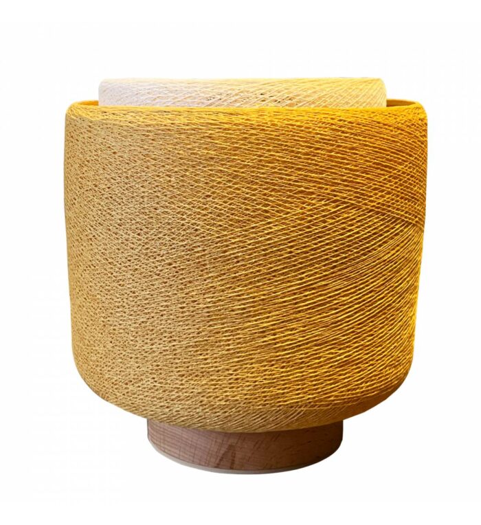 Світильник Tulipe в кольорах кемел та екрю вирізняється теплим поєднанням карамельно-коричневого кемелу та м’якого нейтрального екрю. Два абажури, сплетені вручну з бавовняної нитки, кріпляться до основи з необробленого бука за допомогою магнітної системи, вбудованої в плетіння. Вона залишається повністю непомітною після встановлення. Це поєднання кольорів і текстур створює м’яке, затишне світло з елегантним характером.